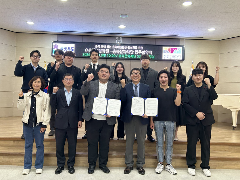 김경식 충북문화재단 대표이사는 "충북 청년들이 문화예술을 통해 자유롭게 꿈을 펼칠 수 있는 환경을 만드는 데 재단이 적극 협력하겠다"며 "이번 협약이 청년 문화예술 생태계의 든든한 토대가 되길 기대한다"고 밝혔다.