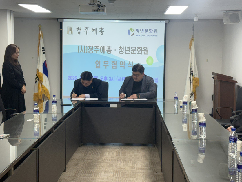 사단법인 청주예총(회장 문길곤)과 사단법인 청년문화원(원장 김흥용)은 9일 청년 문화예술 활성화 및 지역사회 발전을 위한 업무협약(MOU)을 체결했다.